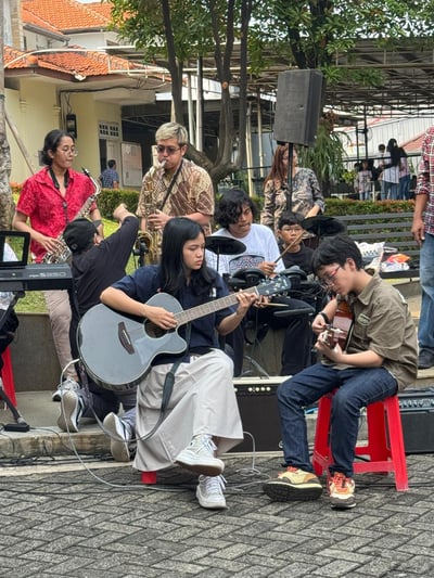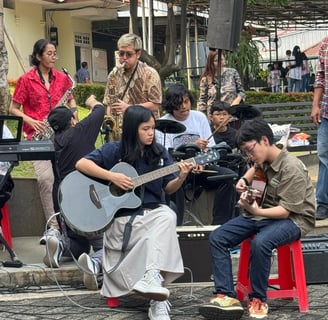 Selagi menikmati hidangan kuliner nusantara dari UMKM Bintaro, kamu akan dihibur oleh Hiburan live music dari adik2 band Laurensia