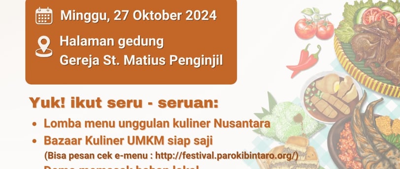 Rayakan kekayaan kuliner lokal Nusantara bersama kami di Festival Kuliner Nusantara 2024 di Paroki Bintaro.